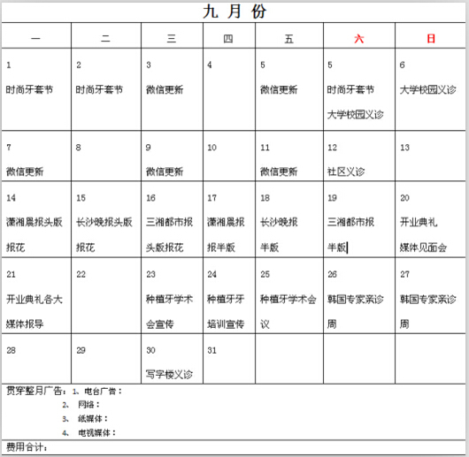 邀请XX口腔医院老客户和当地名流,平面媒体、网络媒体、电台、电视台的联系人参加开业典礼,并通过媒体为此次盛大开业做媒体宣传,广发新闻软文,争取在开业之际一举打响品牌。