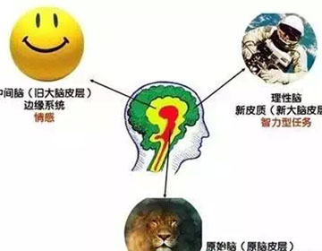 人类大脑是一个三层包裹的结构,里层是负责基本生理活动的脑干,俗称本能脑,掌握着人类各种最基本的生理需要。中间层是边缘系统,负责喜怒哀乐等基本情绪的产生,因此俗称情绪脑,是人类的情感中心。最外层是令我们得意的大脑皮层,即负责高级认识的理性脑。它控制着所有高级、有序的抽象逻辑思维。