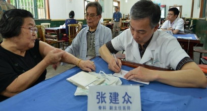 骨科副主任医师张建众正在为社区患者咨询。